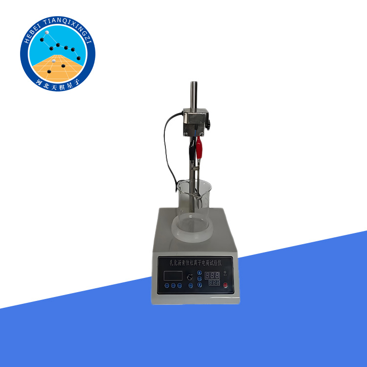 This instrument is suitable for determining the ionic polarity of various emulsified asphalt particles, i.e., the type of ionic charge. The test instrument consists of a power cord, electrodes, an adjustable main unit (which can display voltage, current, and time), electrode connection wires, alligator clips, beakers, etc.
